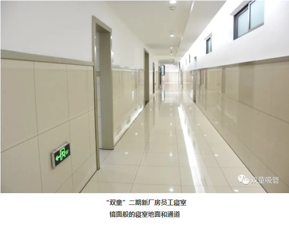 除了高品質(zhì)的建筑材料外,“雙童”二期新廠房的員工寢室硬件投入也是一步到位。在原先一期廠區(qū)的基礎(chǔ)上進(jìn)行了升級(jí)和優(yōu)化,配置了優(yōu)質(zhì)的寢室硬件:五星級(jí)酒店式的寢室大廳,自動(dòng)感應(yīng)的玻璃門(mén)、所有衛(wèi)生間配置科勒水龍頭……