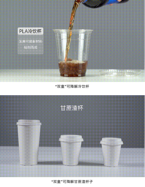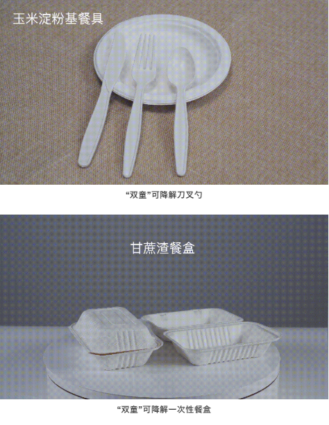 除了上述可降解膜袋類產(chǎn)品,“雙童”也推出了可降解餐具類產(chǎn)品,例如:可降解刀刀叉勺、可降解甘蔗渣餐盒、餐盤和杯子等。