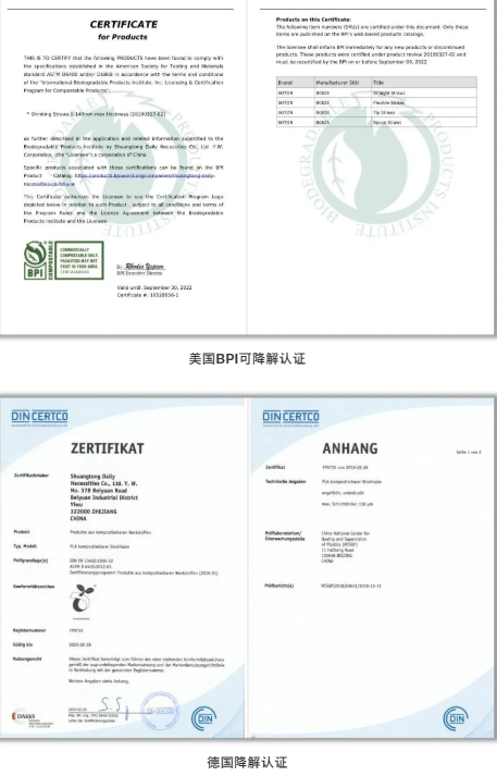 為了能夠讓客戶更加放心地選購可降解吸管,“雙童”目前已通過各類可降解產(chǎn)品的認(rèn)證資質(zhì),如北京可降解報告、國際認(rèn)證、JJ標(biāo)、海南禁塑替代品電子監(jiān)管碼等。如在海南,當(dāng)?shù)叵M(fèi)者在購買已獲電子監(jiān)管碼的禁塑替代品時,可使用手機(jī)掃描二維碼進(jìn)行識別,能夠了解到該產(chǎn)品的生產(chǎn)信息,為全生物降解塑料制品的市場監(jiān)管、質(zhì)量監(jiān)督抽查和產(chǎn)品追溯提供了便利。