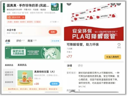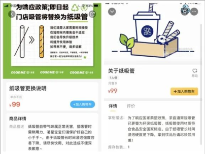 除了星巴克、麥當(dāng)勞、喜茶等幾個月前甚至去年就開始行動的品牌,這陣子剛換上環(huán)保類吸管的各家茶飲店,線上線下免不了一番宣傳和解釋。打開外賣App,不少茶飲店在頁面顯眼處打出了告示:“愛護環(huán)境從一根吸管做起”“可降解吸管,助力環(huán)保”,還有溫馨提醒:“紙吸管長期浸泡硬度易下降,請盡快飲用”“小可愛們插吸管時需稍用力,且保護好自己的手哦”“我們會盡快升級技術(shù)和提升飲用體驗”……