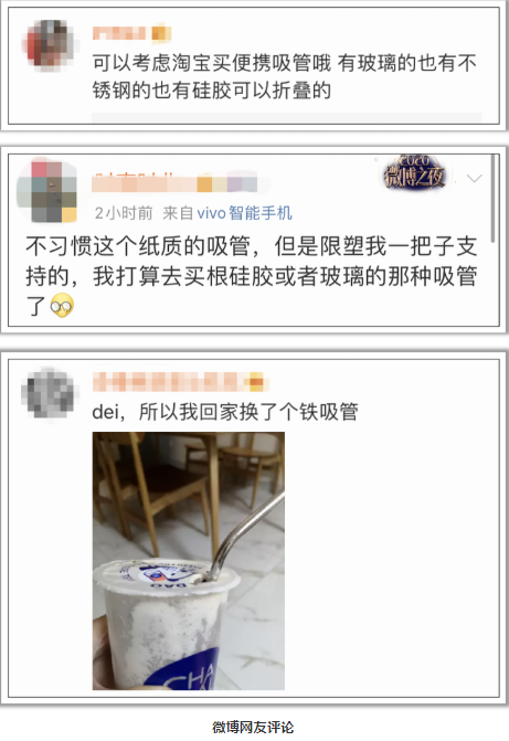 這邊,茶飲店和吸管生產(chǎn)企業(yè)摸著石頭過河,還在尋找傳統(tǒng)塑料吸管的“完美替代品”;那邊,一些年輕人已開始尋找“禁塑令”下的快樂喝奶茶方式,像是網(wǎng)購可重復(fù)使用的吸管。“不習(xí)慣紙吸管,但限塑這件事一定要支持,打算去買根硅膠或玻璃吸管”“機智如我,連夜下單不銹鋼吸管……”