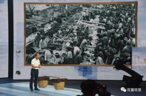 在節(jié)目現(xiàn)場(chǎng),“雙童”樓仲平也帶來了許多精彩的照片。其中,開場(chǎng)照片便是義烏這座城市的對(duì)比照片。通過挑貨郎與義烏小商品城開展全球電商的照片對(duì)比,樓仲平講述了義烏如何從貧瘠落后的小縣城發(fā)展為全球最大的小商品集散中心的故事……
