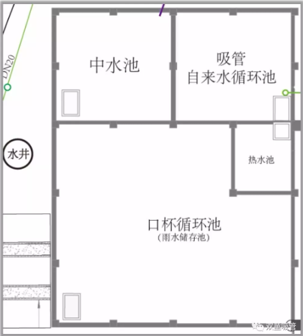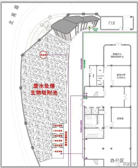 員工寢室樓內(nèi)細(xì)分管道, 通過這些管道將廢水匯集到一起