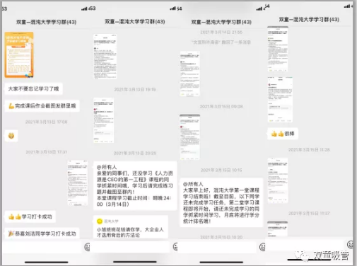 一開始,混沌大學(xué)義烏學(xué)習(xí)中心周上班主任首先向同學(xué)們公示了本期的學(xué)習(xí)情況。作為團(tuán)報(bào)企業(yè),混沌義烏會組建線上學(xué)習(xí)群,每月會在群內(nèi)發(fā)布學(xué)習(xí)任務(wù),督促同學(xué)們學(xué)習(xí)打卡,并和企業(yè)學(xué)習(xí)領(lǐng)導(dǎo)小組負(fù)責(zé)人共同評選出優(yōu)秀作業(yè),并給予學(xué)分獎勵。