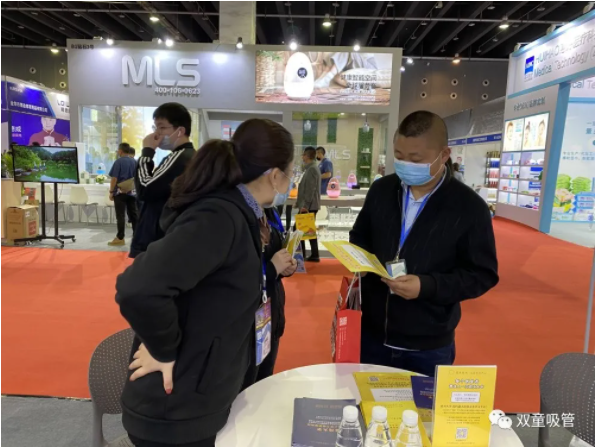 “雙童”員工向客商介紹吸管產(chǎn)品