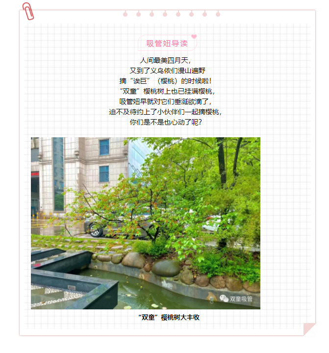 “雙童”摘櫻桃小分隊這就上線啦!新鮮的櫻桃從樹上摘下,直接丟進嘴里,有的酸,有的甜,大家都忍不住吃了一顆又一顆,在“雙童”,實現(xiàn)櫻桃自由,就是這么簡單!