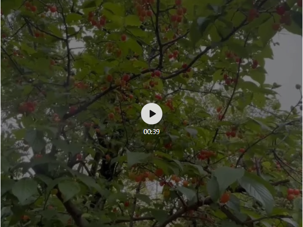 看!“雙童”的櫻桃樹上綴滿了櫻桃果,茂密的櫻葉也遮蓋不住紅橙相間的果實?!靶艋\”們散發(fā)出陣陣誘人果香,讓人不禁胃口大開,口水直流!