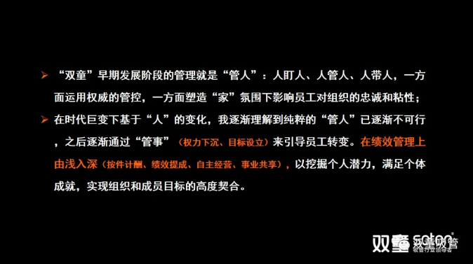 “雙童”在以往的管理形式上采取“管人”的模式,各項(xiàng)事務(wù)都通過層級指令、管控執(zhí)行。在時(shí)代巨變下,基于“人”的變化,我們理解到純粹的“管人”已逐漸不可行。