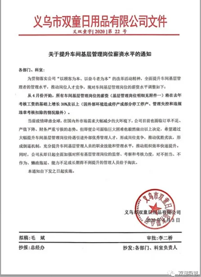 不僅如此,”雙童”在第二波改革推進(jìn)過程當(dāng)中,明確給所有車間基層管理崗位加薪30%及以上,目的是為了吸引外部優(yōu)秀的生產(chǎn)管理人才進(jìn)入,形成倒逼機(jī)制,推動崗位競爭,解決組織效率低下、團(tuán)隊(duì)老化的問題,實(shí)現(xiàn)優(yōu)勝劣汰,從而讓用心做事的人得益,讓追求結(jié)果的奮斗者得到彰顯!