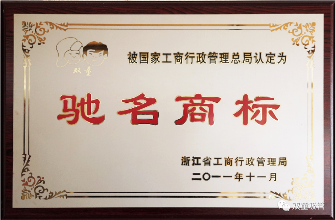 “雙童”商標(biāo)榮獲國家工商總局認(rèn)定的“中國馳名商標(biāo)”稱號,成為了義烏歷史上第八件中國馳名商標(biāo)