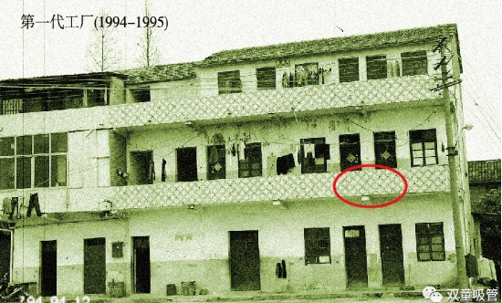 1994年4月5日,樓仲平夫妻在當(dāng)時的義烏市福田鄉(xiāng)寺后盛村租用了兩間兩層(紅圈所示)的普通民房作為生產(chǎn)場地,邁開了《吸管傳奇》創(chuàng)業(yè)的第一步。