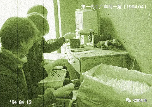創(chuàng)業(yè)初期的吸管采用手工半自動生產(chǎn),設(shè)備簡陋,產(chǎn)量低,且工作環(huán)境艱苦,主要以生產(chǎn)低檔產(chǎn)品為主。上圖為第一代工廠車間一角。