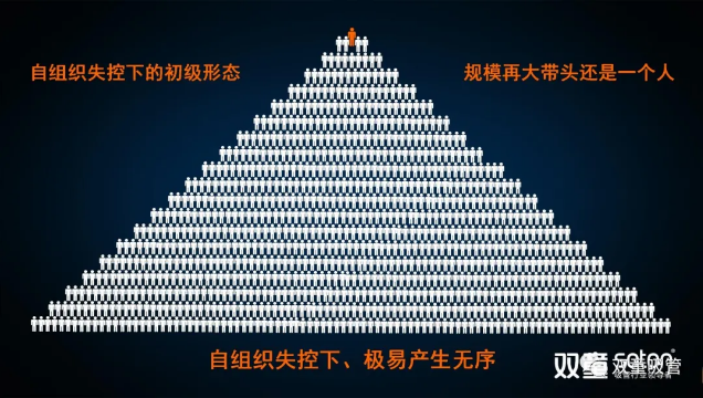 緊接著樓老師提出了自組織邊界缺陷的規(guī)模問題:由于自然人都有一個人際關系的強關系限制,人際強關系的自然人數(shù)一般只能維系九個人,最多也不超過十五人。由此可以理解,企業(yè)組織關系的個體連接會受自組織邊界規(guī)模的限制,十五個自組織形成的規(guī)模顯然無法滿足企業(yè)的發(fā)展訴求,那么該如何突破人際強關系去獲得更多的連接呢?