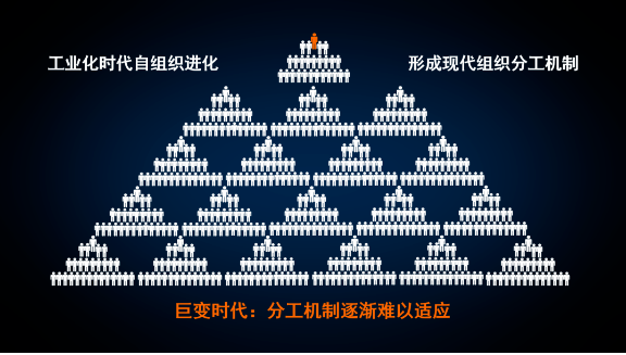 樓老師意識到巨變環(huán)境下只有改變自己和組織形態(tài)才能應對上述不確定帶來的沖突,堅定地打破“組織的經營慣性,推動組織進行結構性變革:推動雙童回歸自組織”。