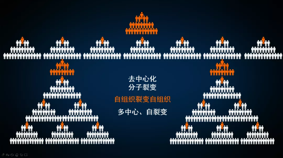 一句話總結就是把大的企業(yè)做小,做成層級簡單、編制靈活的“自組織”結構創(chuàng)業(yè)體來解決企業(yè)的持續(xù)發(fā)展。那么何為“自組織”?