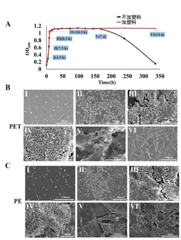 2016年,日本京都工藝纖維大學的小田康平和慶應義塾大學的宮本賢治領導的研究小組發(fā)現,一種微生物可以吞食對苯二甲酸酯塑料(PET),這種攝食PET的細菌稱為大阪堺菌。今年一月,《美國化學會·催化》雜志發(fā)表了中國科學院微生物研究所的吳邊團隊進行的研究,對大阪堺菌降解PET塑料所需的酶進行優(yōu)化,獲得了穩(wěn)定性顯著增強的重設計酶,使得大阪堺菌對PET薄膜的降解效率提升了300倍。