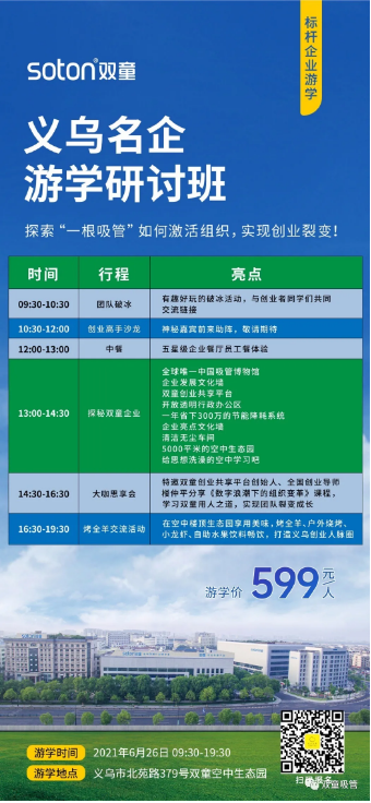 親愛的創(chuàng)業(yè)者們,如果你也想和他們一樣提升組織效率,激活團隊成員共同成長,那就掃描下方海報的二維碼報名吧!每期僅限50人,超額順延到下一個班次哦!讓我們相約在雙童,不見不散!