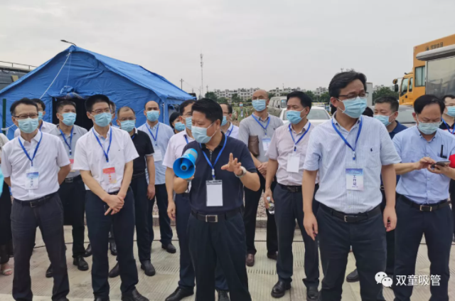 本次檢測演練總指揮部就設(shè)立在雙童新廠區(qū)六樓的大會(huì)堂內(nèi),金華市委常委、義烏市委書記林毅,金華市委常委祝倫根,金華市副市長、義烏市市長王健及義烏市市委副書記陳小忠、義烏市市委常委賈以鳴、義烏市副市長江棟、義烏市副市長駱小俊等領(lǐng)導(dǎo)親臨一線現(xiàn)場指揮演練。