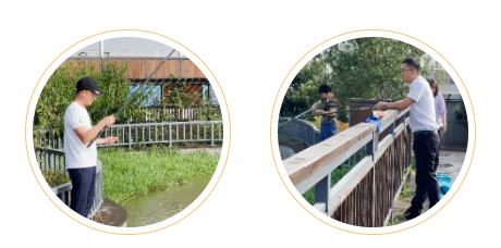 為了給大家燒烤聚餐準備鮮美的食材,10月8日一大早,天剛蒙蒙亮,樓總和李總就已經(jīng)全副武裝地出現(xiàn)在空中生態(tài)園的池塘前,和魚兒來了場“親密接觸”。