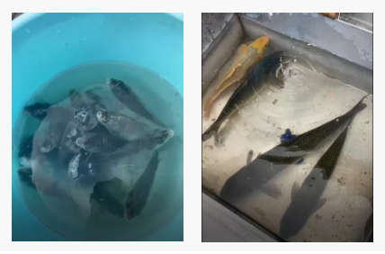 選了幾條合適的魚,其他的就放回池塘啦