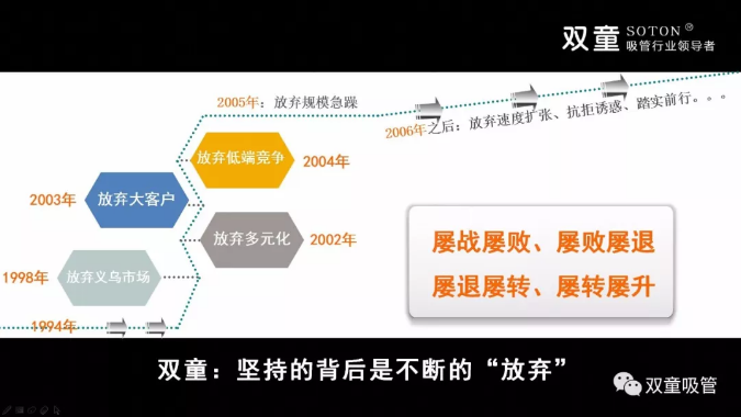 那么,“雙童”是如何打破產(chǎn)品思維的“隱含假設(shè)”,將“吸管”做得與眾不同,成為全球吸管行業(yè)領(lǐng)導(dǎo)者?下面,就讓我們通過(guò)“雙童”董事長(zhǎng)樓仲平的自述來(lái)揭開(kāi)“雙童”的成長(zhǎng)奧秘!