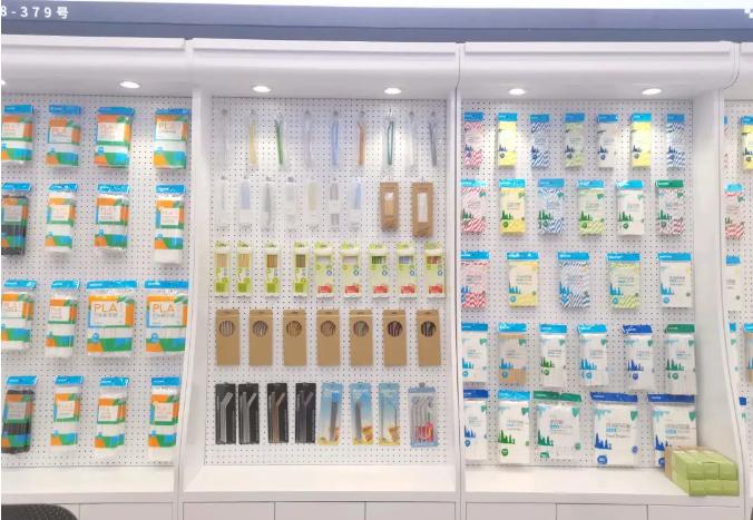 “雙童”展位上琳瑯滿目的吸管展品,大有濃縮版吸管博物館的架勢!從傳統(tǒng)吸管到創(chuàng)意吸管,從紙吸管到可降解吸管,各式各樣的產(chǎn)品已準(zhǔn)備就緒,就等著參展客戶們來“翻牌子”啦!