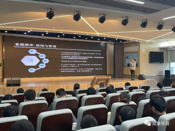 大會伊始,“雙童”后勤科長馬夢麗為大家分享了餐廳秩序、廠區(qū)衛(wèi)生和寢室管理細則,讓大家知曉在“雙童”的衛(wèi)生注意事項,引導員工們共同維護“雙童”的美好環(huán)境!