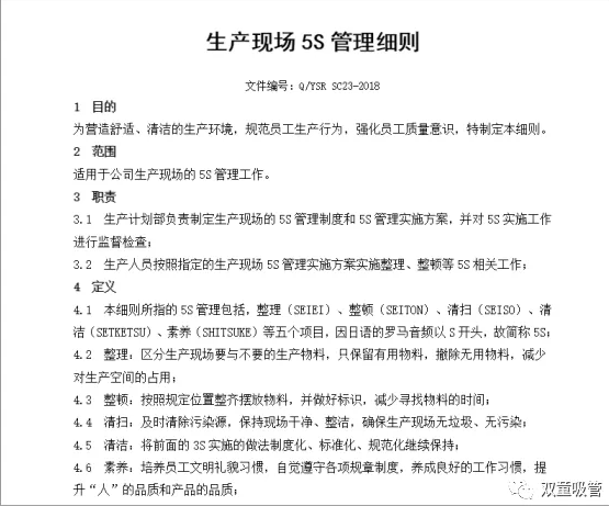 生產(chǎn)現(xiàn)場5S管理細則部分內(nèi)容截圖