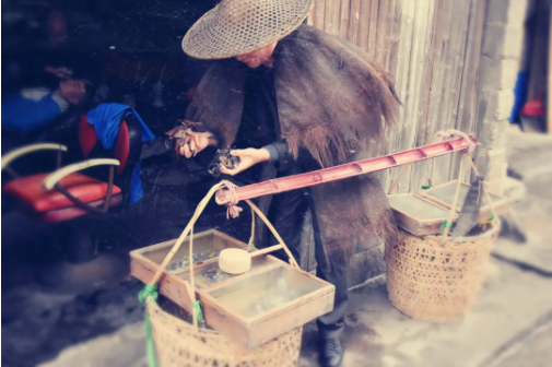 當(dāng)年的貨郎擔(dān)(配圖來源于網(wǎng)絡(luò)) 挑“貨郎擔(dān)”用的扁擔(dān)和一般的扁擔(dān)是不一樣的,杉木扁擔(dān)很軟,挑的過程當(dāng)中會很有節(jié)奏的搖起來。