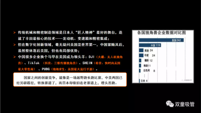 今天這個時代需要有選擇的去理解工匠精神。日本在全球機械制造領(lǐng)域得益于半個多世紀的匠人精神,從而形成核心的競爭力。但是在數(shù)字化創(chuàng)新領(lǐng)域,像阿里、抖音都是獨角獸數(shù)字化企業(yè)顯現(xiàn)出了他們的優(yōu)勢。