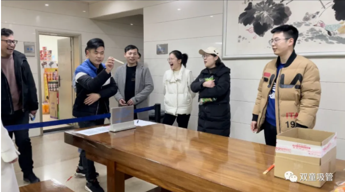 零食大禮包可沒有這么好拿哦!吸管妞還為大家準(zhǔn)備了一個(gè)傳統(tǒng)小游戲——投壺(中國古代士大夫宴飲時(shí)做的一種投擲游戲)。只要在吸管妞指定位置用筷子投進(jìn)箱子里,5次投中2次即視為通過。大家看到后都躍躍欲試,紛紛報(bào)名參加,現(xiàn)場竟有小伙伴百發(fā)百中,快來看看都有哪些神射手吧!