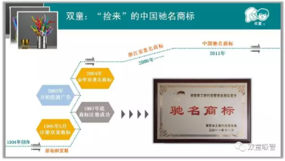 正是因?yàn)檫@次偶然的機(jī)遇,樓仲平“撿來(lái)”了中國(guó)馳名商標(biāo),讓“雙童”邁出了企業(yè)的品牌建設(shè)發(fā)展最為關(guān)鍵的一步!