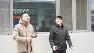 樓仲平和李二橋?yàn)閱T工加油鼓勁