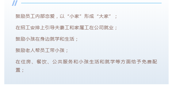 為了能讓員工全身心投入到工作當(dāng)中,在工作之余不再擔(dān)憂家庭生活。“雙童”鼓勵價值型員工將配偶、老人和小孩接到公司就住,最大程度上解決價值型員工的后顧之憂。因此,2004年9月開始,“雙童”就明確把中國傳統(tǒng)“家文化”作為員工管理的著力點: