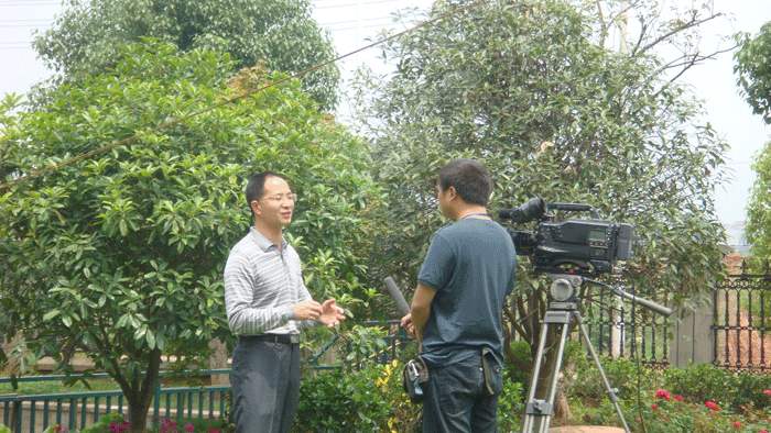 上圖:董事長樓仲平就節(jié)約國土資源接受《厚土》欄目組記者采訪