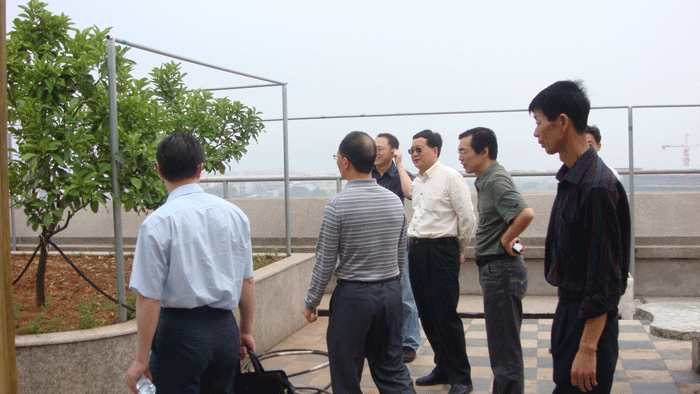 上圖:張瑞基一行參觀考察公司屋頂花園