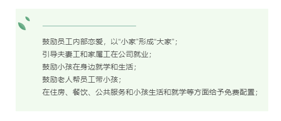 同時(shí),“雙童”還關(guān)注人文環(huán)境,考慮到人性需求,大力推行“家”文化,讓員工兼顧家庭與工作,以此來作為員工管理的著力點(diǎn):