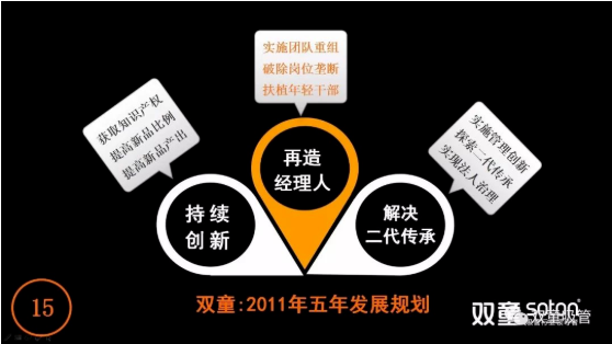 一直以來,“雙童”堅(jiān)持運(yùn)用組織激勵(lì)來激活員工創(chuàng)造力,無論是“再造經(jīng)理人”還是股份激勵(lì),都對(duì)留住年輕人才起到了重要作用。2011年底,“雙童”開始進(jìn)行“再造經(jīng)理人”團(tuán)隊(duì)重組,把一大批積極進(jìn)取、用心做事、敢于擔(dān)當(dāng)?shù)哪贻p骨干提拔到核心行政崗位。