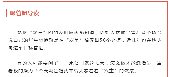 “雙童”在股權激勵和事業(yè)部創(chuàng)業(yè)共享機制的激發(fā)下,也讓更多員工從管理者向創(chuàng)業(yè)者轉變,最大程度發(fā)揮每個人團隊的能動性,共同把雙童的“蛋糕”做大!