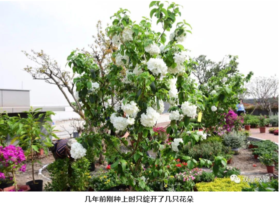 雙童:屋頂花園的繡球花開正當(dāng)時(shí)!一簇簇潔白花朵、連成一片猶如美麗的云彩!