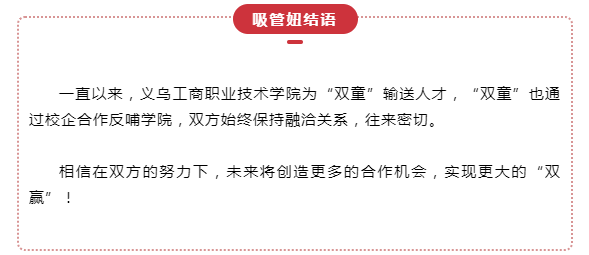 樓仲平指出,校企雙方應(yīng)該發(fā)揮“雙童”在產(chǎn)教融合型企業(yè)開展協(xié)同育人、資源整合等方面的獨(dú)特優(yōu)勢。通過雙童商學(xué)院構(gòu)建高水平的“產(chǎn)教融合體”,實(shí)現(xiàn)教育和產(chǎn)業(yè)全面融合、形成校企合作可持續(xù)發(fā)展的長效機(jī)制,優(yōu)化“產(chǎn)、學(xué)、研、培”五位一體模式,打造有特色、有深度、可推廣的校企合作義烏新范式。