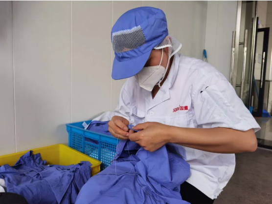除了清洗,洗衣工也要對(duì)工服的質(zhì)量進(jìn)行檢查,確保工服的穿著感受良好。如果有掉扣子的情況,洗衣工會(huì)及時(shí)進(jìn)行縫補(bǔ);要是工服出現(xiàn)了大面積損壞,則會(huì)進(jìn)行記錄,將其進(jìn)行報(bào)損并統(tǒng)一處理成清洗抹布。
