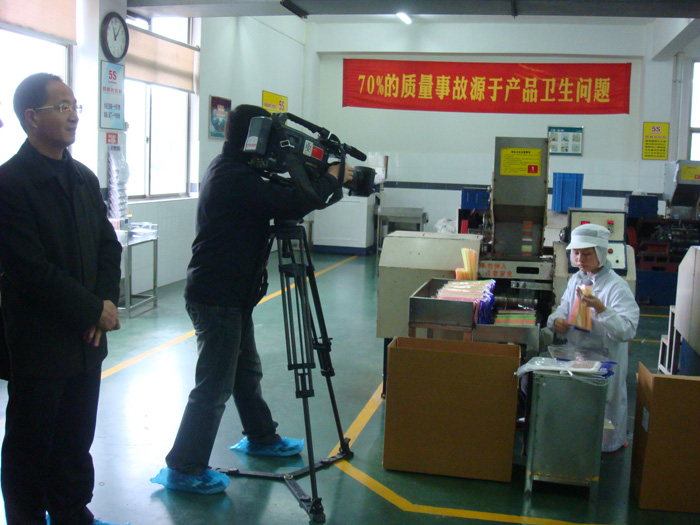 上圖:《中國(guó)財(cái)經(jīng)報(bào)道》欄目組記者到我司吸管生產(chǎn)車(chē)間采訪拍報(bào)