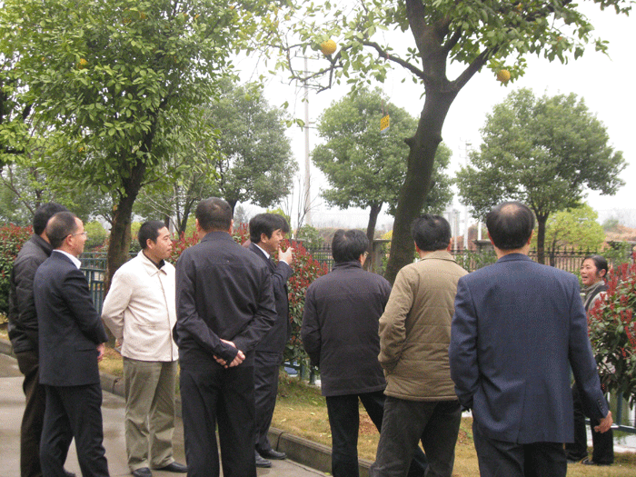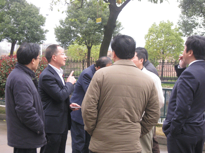 上圖:董事長樓仲平陪同調(diào)研組考察公司節(jié)能減排和循環(huán)經(jīng)濟工作