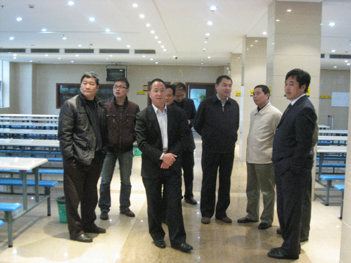 上圖:董事長樓仲平陪同調(diào)研組參觀公司職工餐廳