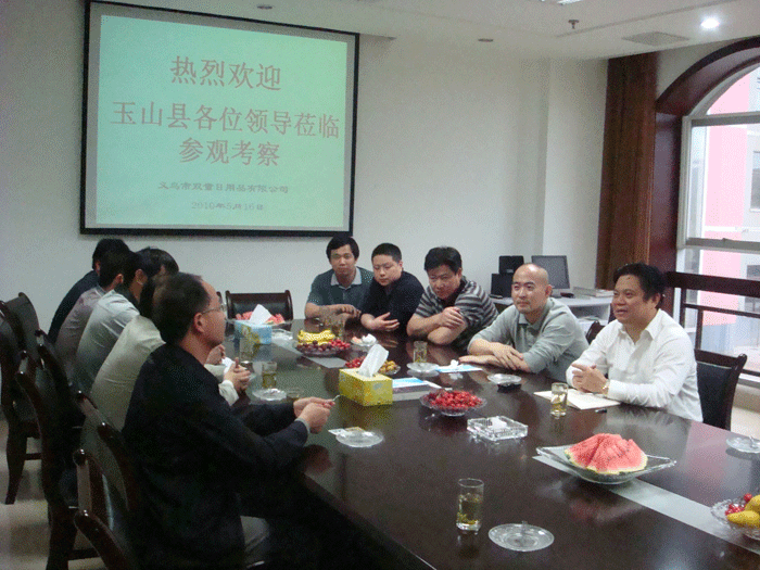 玉山縣黨政考察團先后走訪了公司GMP標準清潔生產(chǎn)廠區(qū)和行政綜合辦公區(qū),對公司目前相對產(chǎn)品的生產(chǎn)規(guī)模和畝產(chǎn)值給予了致高評價,隨后,董事長樓仲平陪同考察團在公司行政會議室進行了會談,對公司的發(fā)展概況和未來的發(fā)展思路進行了對話交流,姜松陽書記充分肯定了公司通過不斷努力、企業(yè)自主創(chuàng)新所取得的豐碩成果,充分肯定企業(yè)未來的發(fā)展思路,并誠摯的邀請公司到江山縣投資興業(yè)。