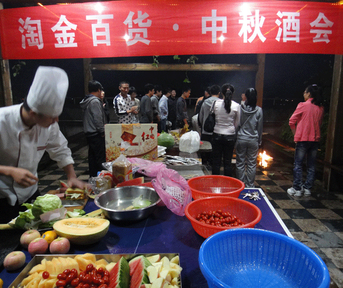 2010年9月23日晚上,“雙童”公司旗下的雙童淘金電子商務(wù)有限公司組織了一場(chǎng)別開生面的“淘金百貨·中秋酒會(huì)”活動(dòng),酒會(huì)以自助的露天燒烤為主要組織形式,中間穿插一些競(jìng)猜互動(dòng)。酒會(huì)場(chǎng)地選定在雙童吸管十樓的空中花園,然后在多功能廳唱歌跳舞,雙童和淘金公司的30多人全部參加,酒會(huì)現(xiàn)場(chǎng)還邀請(qǐng)到了義烏電子商務(wù)界一些企業(yè)老總和高管。并召集到了一些行業(yè)人士到淘金百貨公司參觀和交流,取得了良好的互動(dòng)效應(yīng)。