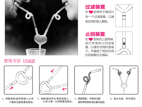 由雙童吸管全新獨(dú)創(chuàng)設(shè)計(jì)的全球?qū)@a(chǎn)品“愛(ài)心吸管”: