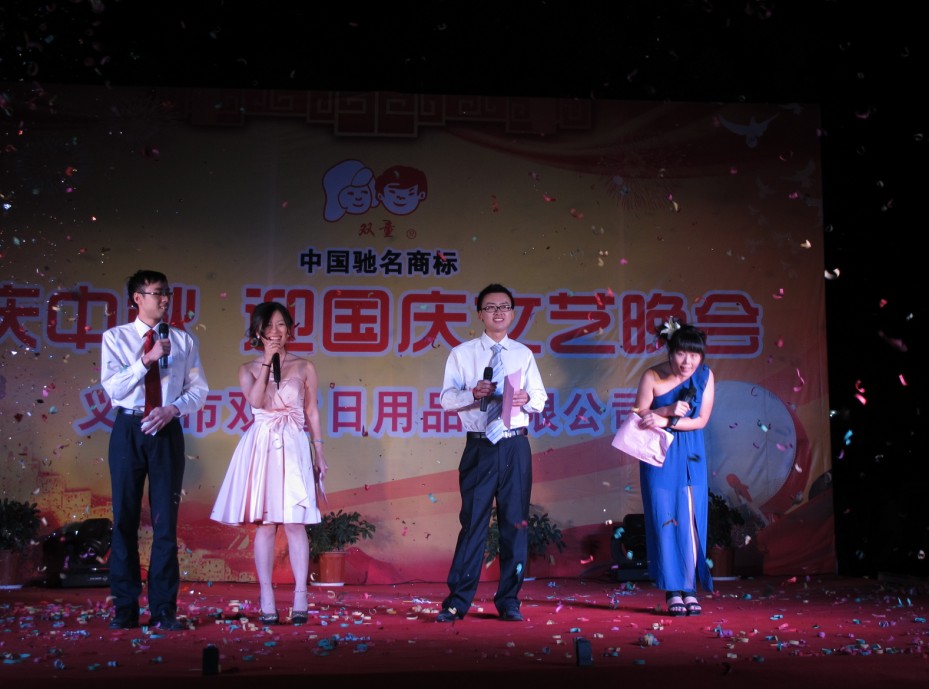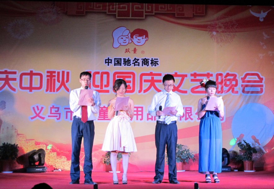 為了迎接祖國63誕辰紀(jì)念日,巧逢中國傳統(tǒng)節(jié)日“中秋節(jié)”來臨之際,我們雙童吸管特舉辦大型“慶中秋•迎國慶”主題聯(lián)歡晚會。晚會于9月29日18:30分在本公司隆重舉行!一場別出心裁的文藝晚會在董事長樓仲平的致辭祝福聲中拉開帷幕。