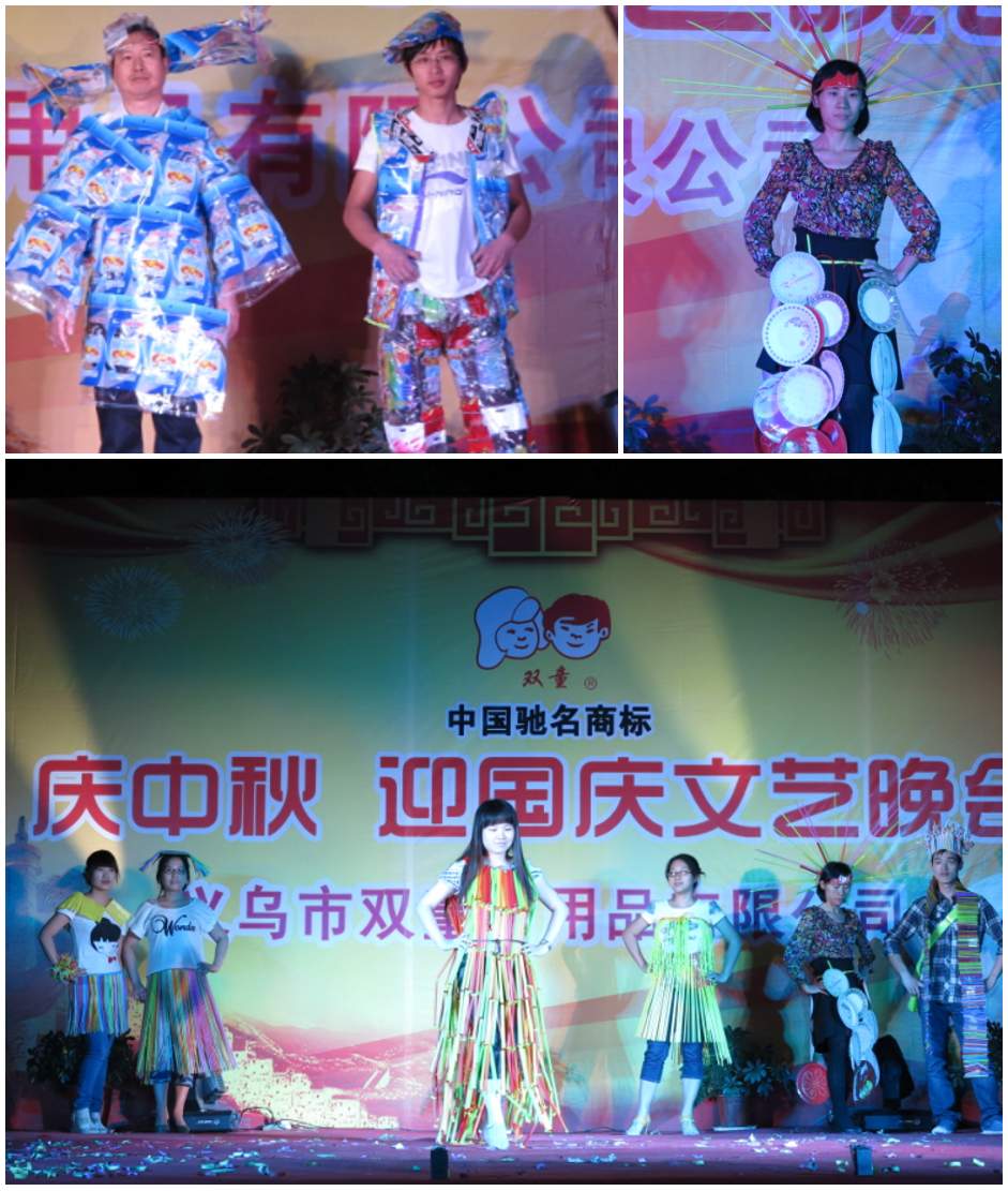瞧,外銷部為大家?guī)淼膭?chuàng)意時裝表演,衣服不租不借,都是本部門人員精心設(shè)計,吸管制作衣服、裙子、包裝袋做的馬甲、褲子,讓在場的觀眾大跌眼鏡、贊嘆不已!